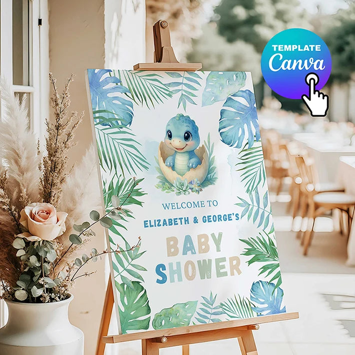 Dinosaur Baby Shower Welcome sign, Hatching Soon.